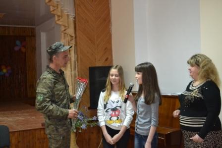 Подякував за подарунки, які вони отримали в лютому від учнівського, батьківського та педагогічного колективів вже на території АТО. В свою чергу, учні подарували Сергію пісню і передали бійцям малюнки та листи з побажанням скорішого повернення додому. Отримуючи квіти з рук дівчат, хвилювання солдата стало помітнішим, бо він, як справжній патріот, розуміє, яка відповідальність лежить на плечах дорослих чоловіків – зберегти мир для дітей.